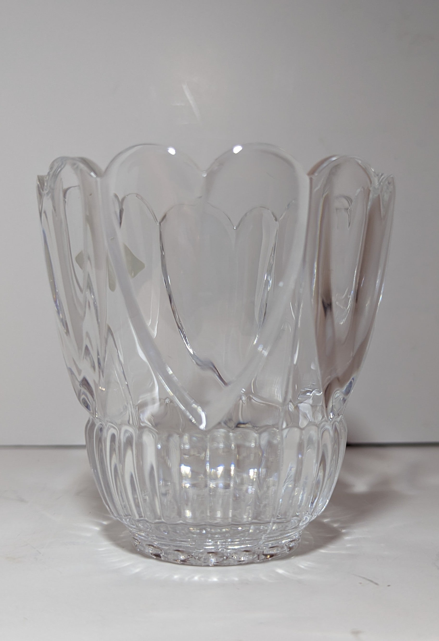 Sticker: Shannon. Gorgeous crystal candle/votive holder. Made up of six hearts around the body. Original sticker. No chips or cracks. Used in excellent condition. Shipping may be different than at check-out. See our shipping policies.